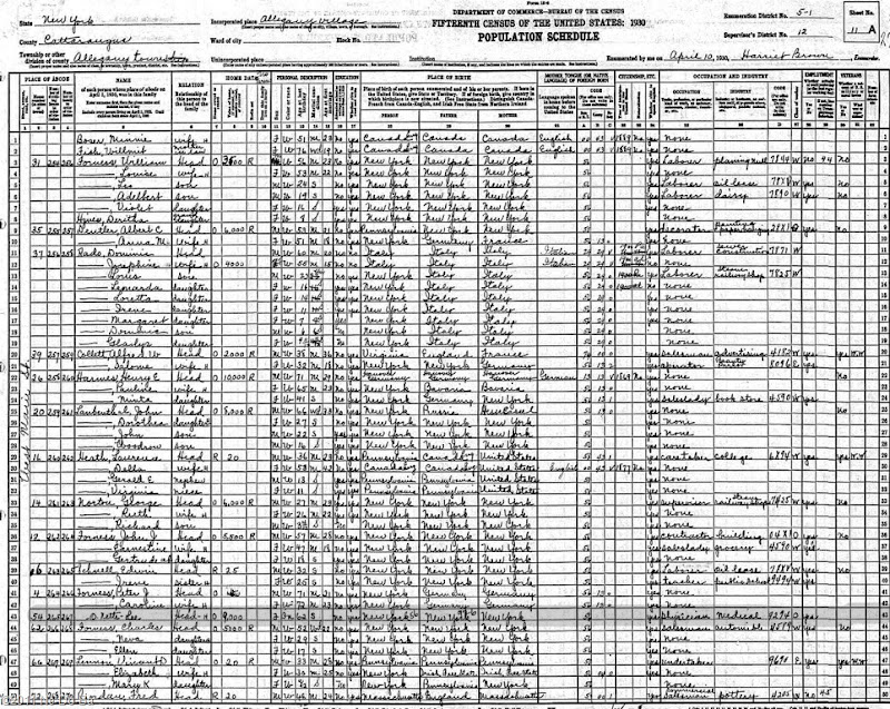 U.S. Census, Allegany, Cattaraugus Co., NY, page 11A, dated 10-Apr-1930.